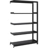 ●間口(mm):942●奥行(mm):343●高さ(mm):1500●有効間口(mm):862●色:サテンブラック●棚段数(段):5●均等積載量(kg/段):100●最大積載量(kg/台):700●棚板調整ピッチ(mm):25●タイプ:連結型