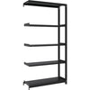 ●間口(mm):942●奥行(mm):343●高さ(mm):1800●有効間口(mm):862●色:サテンブラック●棚段数(段):5●均等積載量(kg/段):100●最大積載量(kg/台):700●棚板調整ピッチ(mm):25●タイプ:連結型