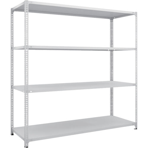 ●間口(mm):1812●奥行(mm):612●高さ(mm):1805●有効間口(mm):1732●色:ホワイト●棚段数(段):4●均等積載量(kg/段):120●最大積載量(kg/台):600●棚板調整ピッチ(mm):25●タイプ:単体型
