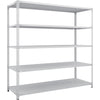 ●間口(mm):1812●奥行(mm):612●高さ(mm):1805●有効間口(mm):1732●色:ホワイト●棚段数(段):5●均等積載量(kg/段):120●最大積載量(kg/台):600●棚板調整ピッチ(mm):25●タイプ:単体型