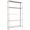 ●間口(mm):1215●奥行(mm):315●高さ(mm):2104●有効間口(mm):1128●色:ネオグレー●棚段数(段):5●均等積載量(kg/段):80●最大積載量(kg/台):400●棚板調整ピッチ(mm):50●タイプ:単体型●組立目安:2人20分