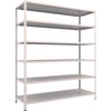 ●間口(mm):1815●奥行(mm):615●高さ(mm):2104●有効間口(mm):1728●色:ネオグレー●棚段数(段):6●均等積載量(kg/段):80●最大積載量(kg/台):400●棚板調整ピッチ(mm):50●タイプ:単体型●組立目安:2人20分