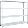 ●間口(mm):1812●奥行(mm):462●高さ(mm):1505●有効間口(mm):1732●色:ホワイト●棚段数(段):4●均等積載量(kg/段):120●最大積載量(kg/台):600●棚板調整ピッチ(mm):25●タイプ:単体型