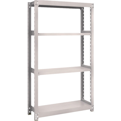 ●間口(mm):902●奥行(mm):309●高さ(mm):1507●有効間口(mm):816●色:ネオグレー●棚段数(段):4●均等積載量(kg/段):200●最大積載量(kg/台):1500●棚板調整ピッチ(mm):25●タイプ:単体型●組立目安:2人30分