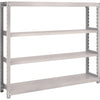 ●間口(mm):1502●奥行(mm):309●高さ(mm):1207●有効間口(mm):1416●色:ネオグレー●棚段数(段):4●均等積載量(kg/段):200●最大積載量(kg/台):1500●棚板調整ピッチ(mm):25●タイプ:単体型●組立目安:2人30分