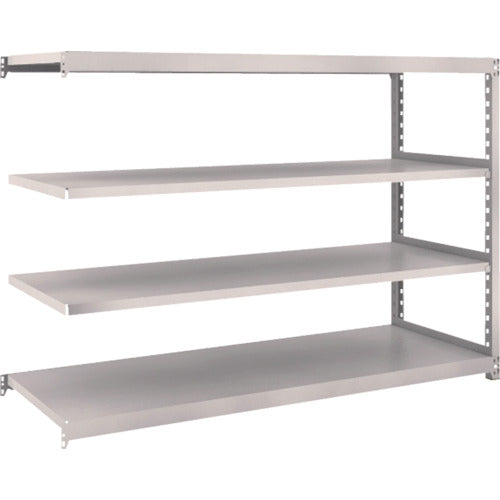 ●間口(mm):1760●奥行(mm):889●高さ(mm):1207●有効間口(mm):1716●色:ネオグレー●棚段数(段):4●均等積載量(kg/段):200●最大積載量(kg/台):1000●棚板調整ピッチ(mm):25●タイプ:連結型●組立目安:2人30分