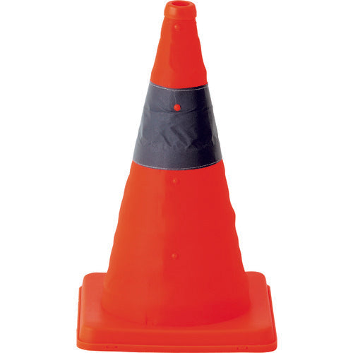 緑十字 伸縮式三角コーン 橙 伸縮コーン−YR(小) 高さ410mm(ベース245mm角) 反射材付