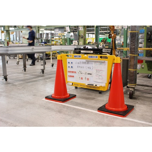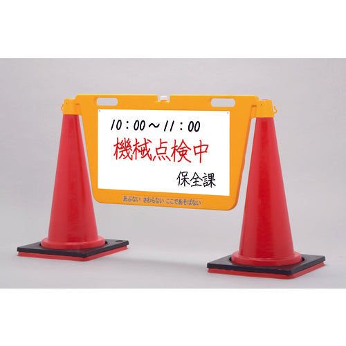 ●品名:コーンサイン●色:黄●表示内容:ホワイトボード●縦(mm):485●横(mm):1070●ボード厚み(mm):30