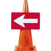 ●品名:全面反射方向指示板 カラーコーン用●色:赤地白矢印●反射材色:白●表示内容:矢印●縦(mm):300●横(mm):500●幅(mm):500●高さ(mm):300●差込口内径(mm):120φ