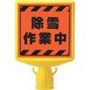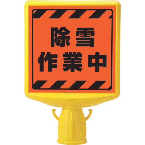 ●品名:コーンサイン●色:イエロー●表示内容:除雪作業中●縦(mm):412●横(mm):280●幅(mm):88●表示面寸法(mm):250×250