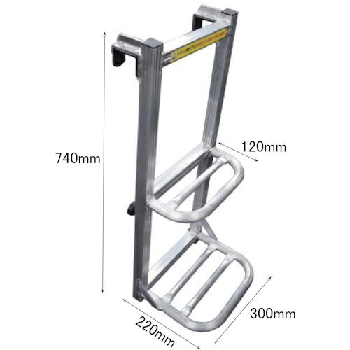 ●あおりや溝に引っ掛けるだけの簡単設置です。●全溶接加工の為、丈夫で安全性も高いです。●取り付け部には、ウレタンカバーとゴム脚を使用し、ボディーに傷をつけません。●アルミ製なので、軽く持ち運びがしやすいです。