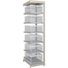 ●間口(mm):450●奥行(mm):604●高さ(mm):1806●有効間口(mm):386●色:ネオグレー●均等積載量(kg/段):20●棚板調整ピッチ(mm):25●付属折りたたみコンテナ:TSK-O30B TM×6個●組立目安:2人30分●オリコン容量(L):30●コンテナ段:1列6段●コンテナ個数:6●タイプ:連結型・棚板なしタイプ