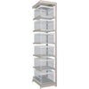 ●間口(mm):450●奥行(mm):604●高さ(mm):2106●有効間口(mm):386●色:ネオグレー●均等積載量(kg/段):20●棚板調整ピッチ(mm):25●付属折りたたみコンテナ:TSK-O40B TM×6個●組立目安:2人30分●オリコン容量(L):40●コンテナ段:1列6段●コンテナ個数:6●タイプ:連結型・棚板なしタイプ