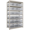 ●間口(mm):1203●奥行(mm):604●高さ(mm):2106●有効間口(mm):1116●色:ネオグレー●棚段数(段):7●均等積載量(kg/段):150●棚板調整ピッチ(mm):25●付属折りたたみコンテナ:TSK-O30B TM×18個●組立目安:2人30分●オリコン容量(L):30●コンテナ段:3列6段●コンテナ個数:18