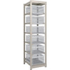 ●間口(mm):473●奥行(mm):604●高さ(mm):1806●有効間口(mm):386●色:ネオグレー●均等積載量(kg/段):20●棚板調整ピッチ(mm):25●付属折りたたみコンテナ:TSK-O30B TM×6個●組立目安:2人30分●オリコン容量(L):30●コンテナ段:1列6段●コンテナ個数:6●タイプ:棚板なしタイプ
