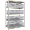 ●間口(mm):1203●奥行(mm):604●高さ(mm):1806●有効間口(mm):1116●色:ネオグレー●棚段数(段):5●均等積載量(kg/段):150●棚板調整ピッチ(mm):25●付属折りたたみコンテナ:TSK-O40B TM×12個●組立目安:2人30分●オリコン容量(L):40●コンテナ段:3列4段●コンテナ個数:12