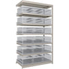 ●間口(mm):1160●奥行(mm):604●高さ(mm):2106●有効間口(mm):1116●色:ネオグレー●棚段数(段):7●均等積載量(kg/段):150●棚板調整ピッチ(mm):25●付属折りたたみコンテナ:TSK-O30B TM×18個●組立目安:2人30分●オリコン容量(L):30●コンテナ段:3列6段●コンテナ個数:18●タイプ:連結型