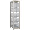 ●間口(mm):473●奥行(mm):604●高さ(mm):1806●有効間口(mm):386●色:ネオグレー●均等積載量(kg/段):20●棚板調整ピッチ(mm):25●付属折りたたみコンテナ:TSK-O40B TM×5個●組立目安:2人30分●オリコン容量(L):40●コンテナ段:1列5段●コンテナ個数:5●タイプ:棚板なしタイプ