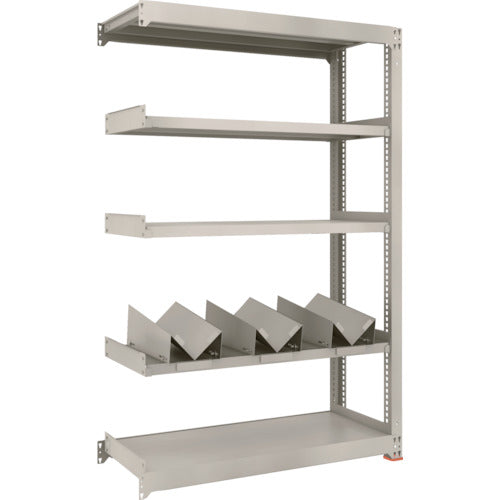 ●間口(mm):1200●奥行(mm):481●高さ(mm):1811●有効間口(mm):1440●色:ネオグレー●均等積載量(kg/段):300●最大積載量(kg/台):2500●棚板調整ピッチ(mm):25●タイプ:連結型●缶受数:3●棚段数(段):5