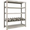 ●間口(mm):1561●奥行(mm):581●高さ(mm):1811●有効間口(mm):1440●色:ネオグレー●均等積載量(kg/段):300●最大積載量(kg/台):2500●棚板調整ピッチ(mm):25●缶受数:4●棚段数(段):5