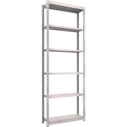 ●間口(mm):903●奥行(mm):304●高さ(mm):2406●有効間口(mm):816●色:ネオグレー●棚段数(段):6●均等積載量(kg/段):150●最大積載量(kg/台):1000●棚板調整ピッチ(mm):25●タイプ:単体型●組立目安:2人30分