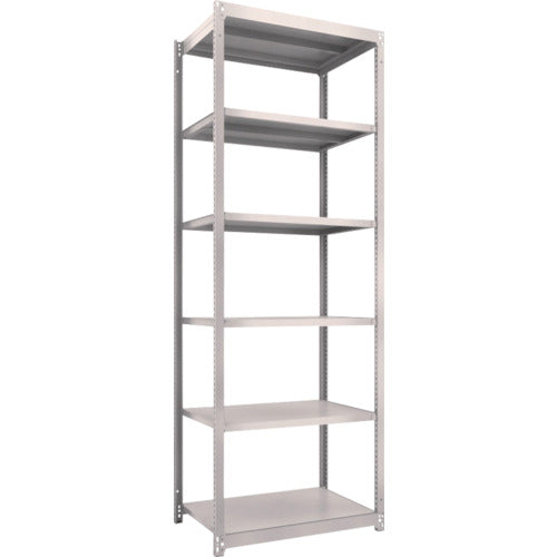 ●間口(mm):903●奥行(mm):604●高さ(mm):2406●有効間口(mm):816●色:ネオグレー●棚段数(段):6●均等積載量(kg/段):150●最大積載量(kg/台):1000●棚板調整ピッチ(mm):25●タイプ:単体型●組立目安:2人30分