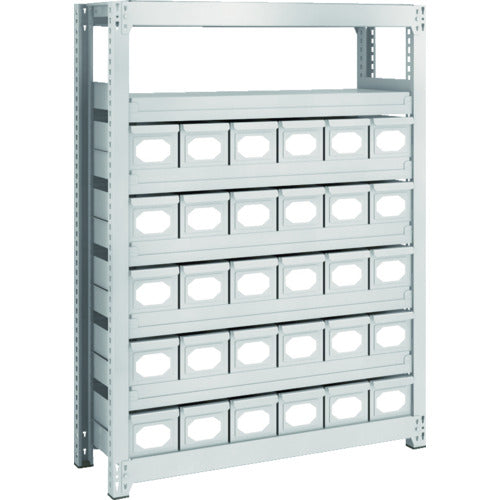 ●間口(mm):902●奥行(mm):309●高さ(mm):1207●有効間口(mm):816●色:ネオグレー●棚段数(段):7●均等積載量(kg/段):200●最大積載量(kg/台):1500●棚板調整ピッチ(mm):25●タイプ:引き出し(小)30●引出:V1NG 30個