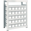 ●間口(mm):961●奥行(mm):481●高さ(mm):1211●有効間口(mm):840●色:ネオグレー●棚段数(段):7●均等積載量(kg/段):300●最大積載量(kg/台):2500●棚板調整ピッチ(mm):25●引出し(個):引き出し(小)30●引出:X1NG 30個