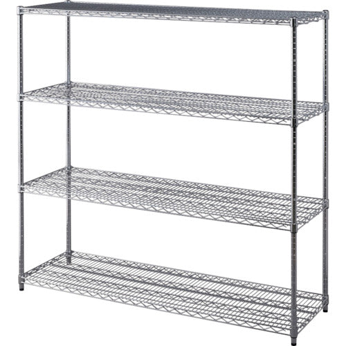 ●間口(mm):1500●奥行(mm):460●高さ(mm):1510●有効間口(mm):1428●パイプ径(mm):25●棚段数(段):4●均等積載量(kg/段):300●最大積載量(kg/台):500●棚板調整ピッチ(mm):25●色:シルバー●支柱径(mm):25