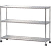 ●間口(mm):1100●奥行(mm):350●高さ(mm):830●有効間口(mm):1044●パイプ径(mm):19●棚段数(段):3●均等積載量(kg/段):50●最大積載量(kg/台):150(静止時)100(移動時)●棚板調整ピッチ(mm):25●色:シルバー●組立目安:1人30分