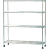 ●間口(mm):1100●奥行(mm):350●高さ(mm):1260●有効間口(mm):1044●パイプ径(mm):19●棚段数(段):4●均等積載量(kg/段):50●最大積載量(kg/台):150(静止時)100(移動時)●棚板調整ピッチ(mm):25●色:シルバー●組立目安:1人30分