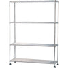 ●間口(mm):1100●奥行(mm):350●高さ(mm):1490●有効間口(mm):1044●パイプ径(mm):19●棚段数(段):4●均等積載量(kg/段):50●最大積載量(kg/台):150(静止時)100(移動時)●棚板調整ピッチ(mm):25●色:シルバー●組立目安:1人30分