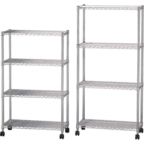 ●間口(mm):760●奥行(mm):360●高さ(mm):1560●有効間口(mm):688●パイプ径(mm):25●棚段数(段):4●均等積載量(kg/段):100●最大積載量(kg/台):300(静止時)・100(移動時)●棚板調整ピッチ(mm):25●色:シルバー●組立目安:1人30分