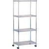 ●間口(mm):550●奥行(mm):350●高さ(mm):1260●有効間口(mm):494●パイプ径(mm):19●棚段数(段):4●均等積載量(kg/段):50●最大積載量(kg/台):150(静止時)75(移動時)●棚板調整ピッチ(mm):25●色:シルバー●組立目安:1人30分