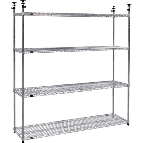 ●間口(mm):1828●奥行(mm):459●高さ(mm):1978〜2478●有効間口(mm):1129●パイプ径(mm):25.4●棚段数(段):4●均等積載量(kg/段):120●最大積載量(kg/台):500●棚板調整ピッチ(mm):25●色:シルバー●組立目安:1人30分