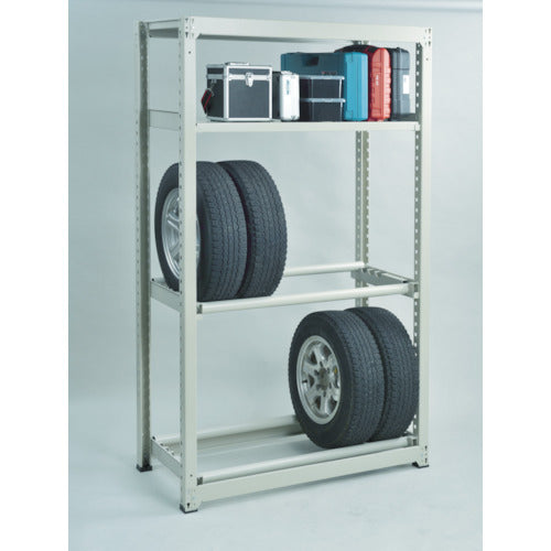 ●タイヤ受けパイプは65mmピッチ、4段階で取付幅を調整できます。●ボルトを1本も使用していないボルトレス構造で、分解・組み立て作業を短縮できます。●棚の段数変更25mmピッチで、自由に調整、変更ができます。●高さ、奥行が同じであれば、増結することができます。また、支柱を兼用することにより、コストダウンが図れます。●優れた断面構造で、荷重、横からのねじれにも強いC型形状の支柱を採用しています。●樹脂ベースの使用により、床を傷つけません。