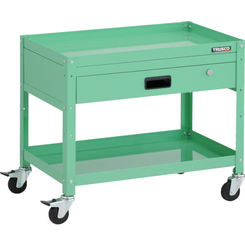 TRUSCO ツールワゴン ラビットワゴン 700X450XH600 2段 1段引出付 ゴム車輪 ヤンググリーン