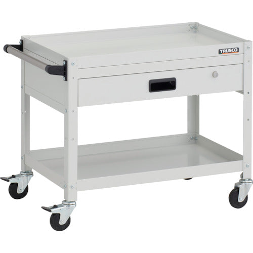 TRUSCO ツールワゴン ラビットワゴン 700X450XH600 2段 1段引出 ハンドル付 ゴム車輪 ホワイト
