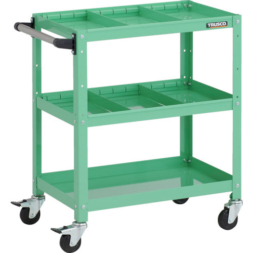 TRUSCO ツールワゴン ラビットワゴン 600X400XH740 3段 仕切板2段付 ハンドル付 ゴム車輪 ヤンググリーン