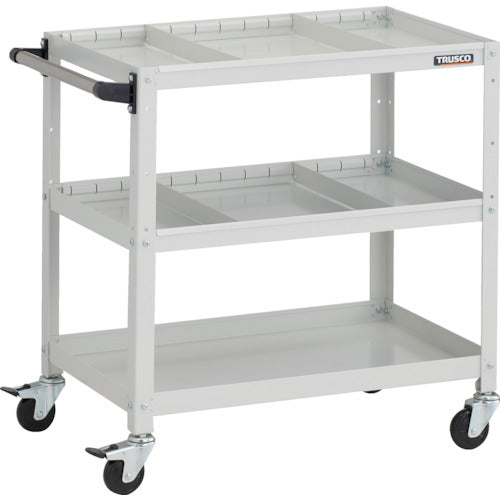 TRUSCO ツールワゴン ラビットワゴン 600X400XH740 3段 仕切板2段付 ハンドル付 ゴム車輪 ホワイト