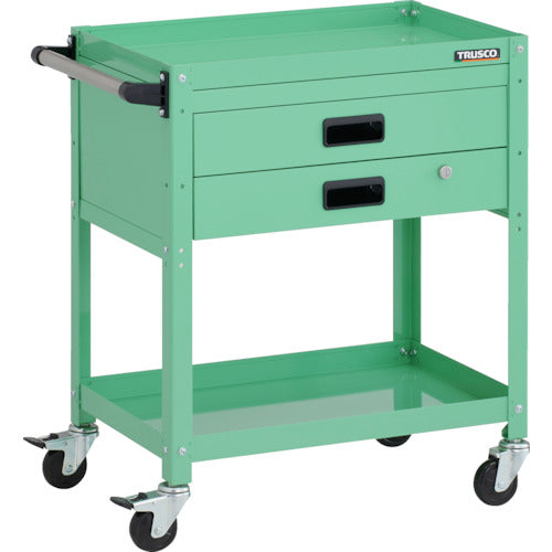 TRUSCO ツールワゴン ラビットワゴン 600X400XH740 2段 2段引出付 ハンドル付 ゴム車輪 ヤンググリーン