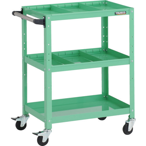 TRUSCO ツールワゴン ラビットワゴン 600X400XH810 3段 仕切板2段付 ハンドル付 ゴム車輪 ヤンググリーン