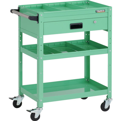 TRUSCO ツールワゴン ラビットワゴン 600X400XH810 3段 1段引出付 仕切板2段付 ハンドル付 ゴム車輪 ヤンググリーン