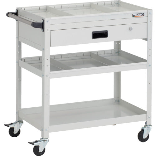 TRUSCO ツールワゴン ラビットワゴン 700X450XH810 3段 1段引出付 仕切板2段付 ハンドル付 ゴム車輪 ホワイト