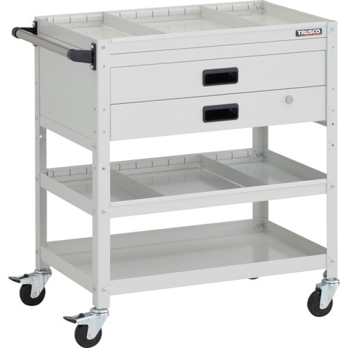 TRUSCO ツールワゴン ラビットワゴン 700X450XH810 3段 2段引出付 仕切板2段付 ハンドル付 ゴム車輪 ホワイト