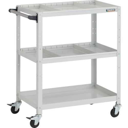 TRUSCO ツールワゴン ラビットワゴン 700X450XH880 3段 仕切板2段付 ハンドル付 ゴム車輪 ホワイト