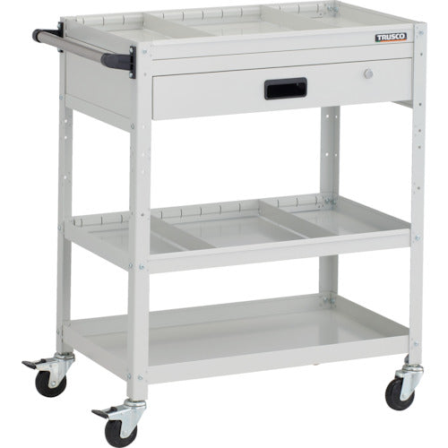 TRUSCO ツールワゴン ラビットワゴン 700X450XH880 3段 1段引出付 仕切板2段付 ハンドル付 ゴム車輪 ホワイト