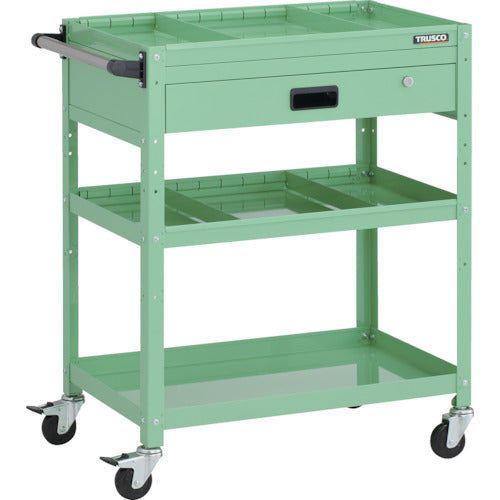 TRUSCO ツールワゴン ラビットワゴン 700X450XH880 3段 1段引出付 仕切板2段付 ハンドル付 ゴム車輪 ヤンググリーン