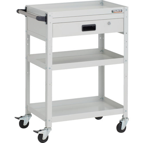 TRUSCO ツールワゴン ラビットワゴン 600X400XH880 3段 1段引出付 ハンドル付 ゴム車輪 ホワイト