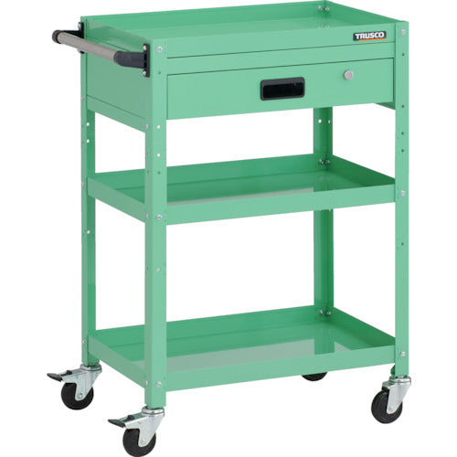 TRUSCO ツールワゴン ラビットワゴン 600X400XH880 3段 1段引出付 ハンドル付 ゴム車輪 ヤンググリーン